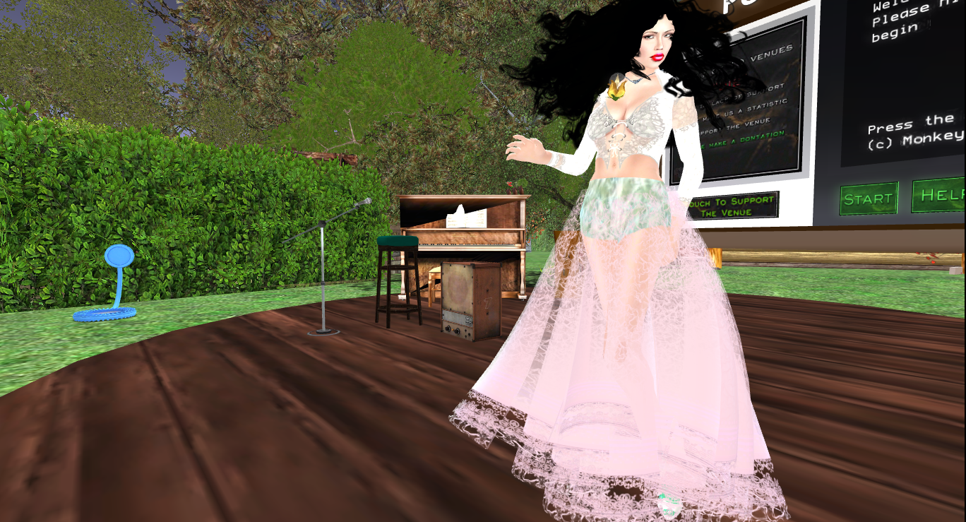 Right now, I'm producing the sequel to "Woo Hoo" and working on the guitar tracks for the first song. At the same time, I have to read the Sailor Moon manga again. I do sing "May" during voice training, but not often because I wrote the song wrong- the key is either too high or too low, and I can't sing it low while on Second Life because my avatar is female ("Don't ruin the illusion"- Marlene Dietrich). Some of the high stuff is out of my range but I sing it anyway, but only in the first half hour and only a couple of them, not back to back, so as not to become exhausted so early in the set. Singing well is NOT easy!